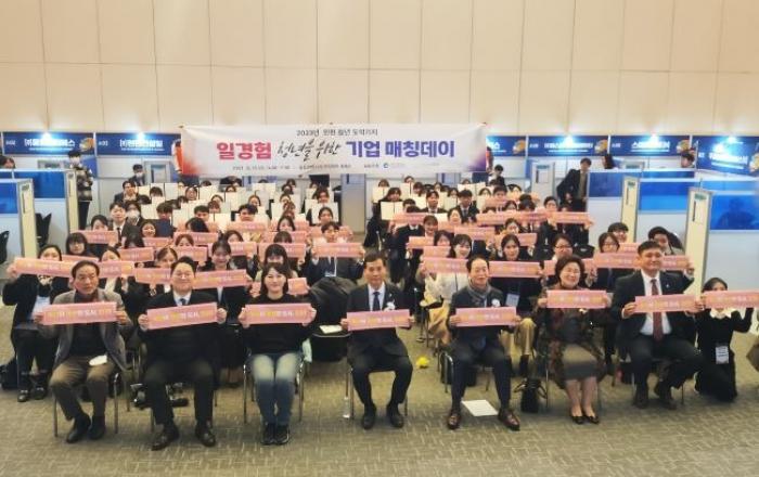[사진제공=인천시]12월 15일 송도 컨벤시아에서 ‘2023년 인천 청년도약기지 사업’에 참여한 청년과 기업 간의 만남 행사인 ‘일 경험 청년을 위한 기업 매칭데이’를 개최했다고 밝혔다.‘인천 청년도약기지 사업’은 기업이 청년에게 일할 수 있는 기회를 제공하면, 인천시