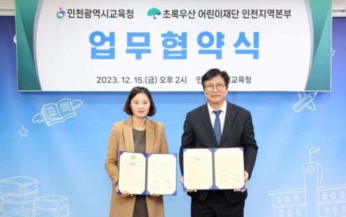 [사진제공=인천시교육청]도성훈 교육감은 초록우산어린이재단 인천지역본부(본부장 이서영)와 저소득 위기가정 아동의 복지 증진을 위한 업무협약을 15일 체결했다고 밝혔다. 이번 협약으로 초록우산은 인천지역 위기가정 아동에게 필요한 자원을 연계하고, 인천시교육청은 초록우산에서