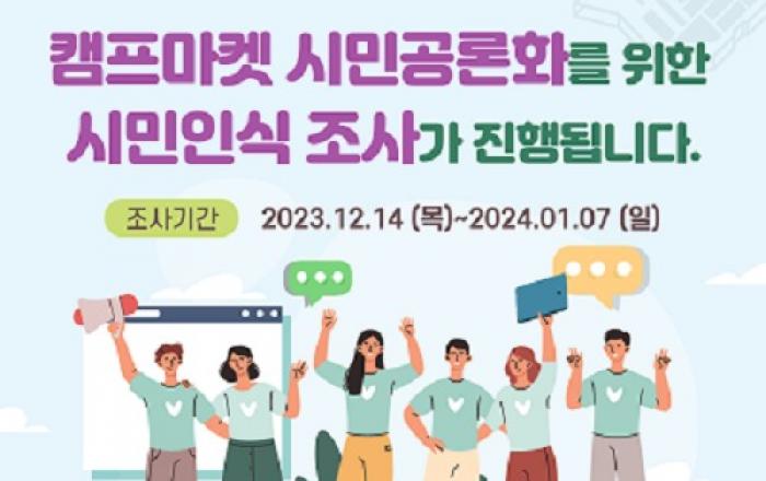 내년 1월 7일까지 부평구에 위치한 미군기지였던 캠프마켓을 공원으로 조성하기에 앞서, 시민의견이 반영된 공원조성 방향 수립을 위해 인천 시민의 전반적 인식을 파악하고, 그 결과를 공론화 과정에 반영하기 위해 실시한다. 캠프마켓 시민공론화추진단에서 조사방법과 표본 설계