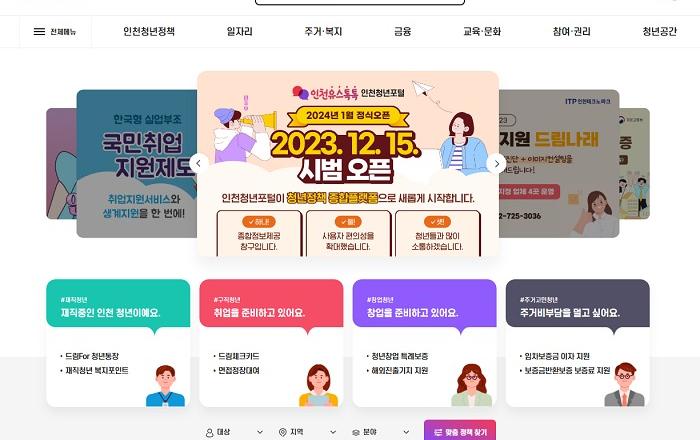 인천시는 청년정책 종합플랫폼인 ‘인천유스톡톡 인천청년포털(youth.incheon.go.kr)’을 12월 15일부터 새롭게 오픈한다고 밝혔다. 그동안 인천청년포털은 인천시 홈페이지 내에서 운영해 왔으나, 청년들의 정보 접근성을 높이고, 서비스 이용 편의를 높이기 위해