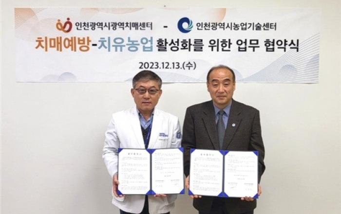 [사진제공=인천시]인천농업기술센터는 지난 13일 인천시 광역치매센터와 ‘치매예방-치유농업 활성화를 위한 업무협약’을 체결했다고 밝혔다.협약식에는 이희중 인천시 농업기술센터 소장과 정성우 인천시 광역치매센터장 등 업무 관계자 8명이 참석해 치유농업과 치매관리사업의 활성화