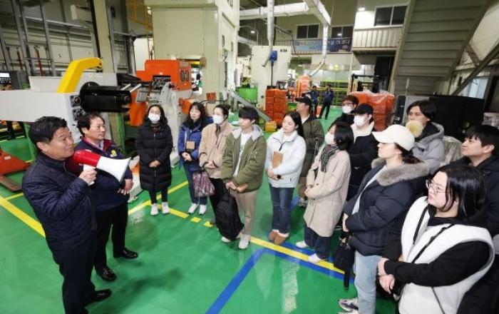 [사진제공=남동구청]인천시 남동구는 최근 ‘청년도전 지원사업’에 참여하는 청년들을 대상으로 남동국가산업단지에서 직업 현장 탐방을 진행했다고 15일 밝혔다. 이번 직업 현장 탐방은 사업 참여 청년 60명이 참여한 가운데 이틀에 걸쳐 산단 내 기업은 ㈜제이피에스코스메틱과