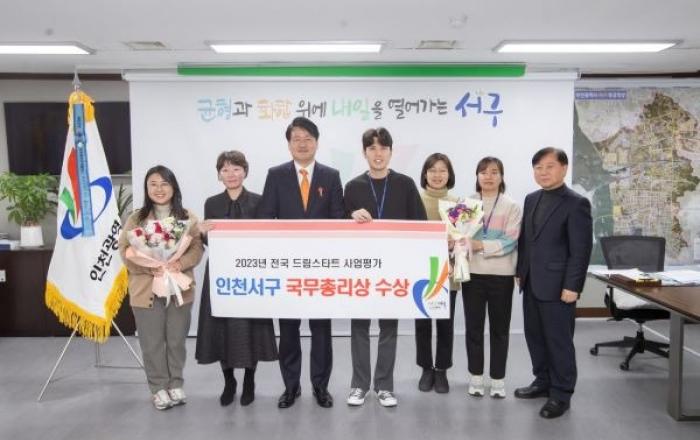 [사진=서구청]인천 서구청이 보건복지부 주관 ‘2023년도 드림스타트 사업평가’에서 우수기관으로 선정 국무총리상을 수상했다. 2018년 대통령상 수상 및 2020년 장관상 수상에 이은 연속 3번째 수상이다. 드림스타트 사업은 모든 아동이 건강한 사회구성원으로 성장할