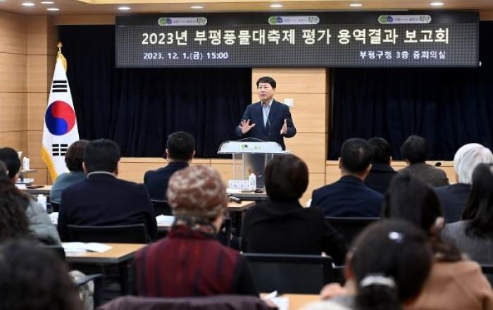 [사진제공=부평구]부평구(구청장 차준택) 축제위원회는 지난 1일 구청 중회의실에서 ‘제27회 부평풍물대축제 평가용역 보고회’를 개최했다.이날 차준택 구청장을 비롯해 구의원, 부평문화원, 부평지역풍물단체, 부평문화예술인협회, 부평구축제위원회 관계자 등 50여 명이 참석했