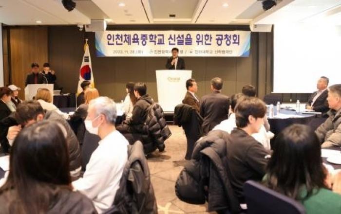 [사진제공=인천시교육청]도성훈 교육감이 학생과 학부모, 교사, 운동부 지도자, 학교관리자, 인천시체육회 및 각 연맹 관계자 등 200여 명이 참여한 가운데 인천체육중학교 신설을 위한 공청회를 지난 11월 28일 오라카이 송도파크호텔에서 개최했다고 밝혔다.이번 공청회는