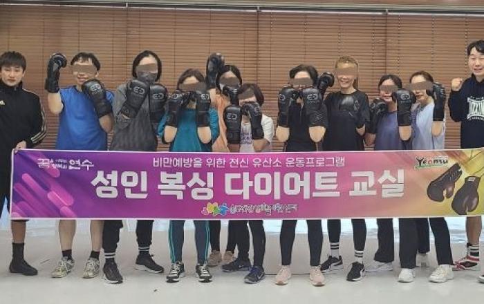 [사진=연수구청]송도건강생활지원센터는 지난 10월부터 11월까지 ‘성인 복싱 다이어트 교실’ 프로그램을 성황리에 종료했다. 이번 프로그램은 즐거운 직장생활 및 일상생활 속 스트레스를 날려버리고, 체지방 감소, 복부 비만 예방, 근력 증대 등을 통해 건강증진에 도움을 주