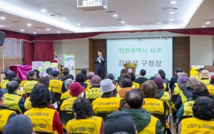 인천 서구노인인력개발센터 강범석 구청장은 지난 27일 폐자원을 새자원으로 교환하여 취약계층에게 지원하는 ESG 나눔식을 진행했다. 2021년에는 우유갑을 수거하여 휴지로 교환한 후 기부하는 ‘재생자원활용사업단’으로 시작됐다. 현재는 폐건전지수거활성화사업과 커피찌꺼기를