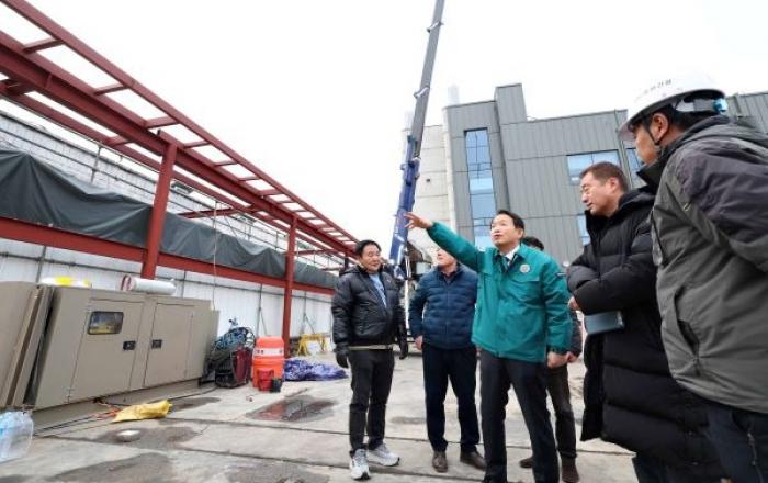 [사진제공=동구청]인천 동구 김찬진 청장이 송림동 현대시장 화재 피해를 복구하기 위해 아케이드(점포 사이 통로) 공사에 총력을 다하고 있다고 29일 밝혔다. 현대종합 시장은 지난 3월 화재가 발생하여 점포 47개소가 소실되는 피해를 입었다. 이때 점포 사이 철골 구조물