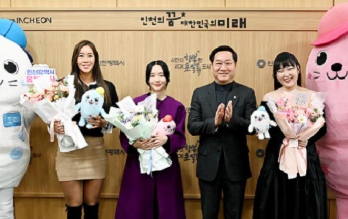[사진제공=인천시]배우 이정현, 개그우먼 이은지, 치어리더 배수현 등 3명을 인천시 홍보대사로 29일 위촉했다.배우 이정현은 1996년 배우로 데뷔해 가수로서 큰 인기를 끌며 현재까지 꾸준한 연기활동으로 대중의 사랑을 받고있는 대한민국 대표 배우다. 최근 KBS 2TV