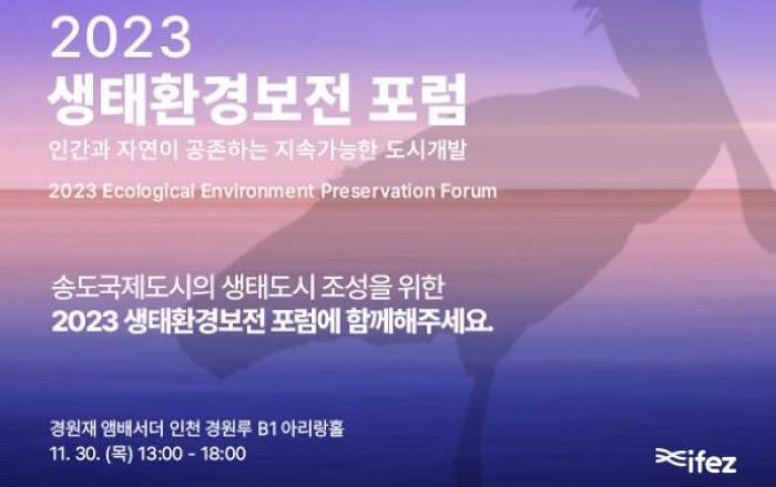 인천경제자유구역청은 오는 30일 오후 1시부터 6시까지 송도 경원재앰배서더 호텔 아리랑홀에서 ‘2023 생태환경보전 포럼’을 개최한다고 28일 밝혔다.이번 포럼은 송도 조류대체서식지 조성사업 기본계획이 수립됨에 따라 송도를 인간과 자연이 공존하는 글로벌 도시로 조성하기