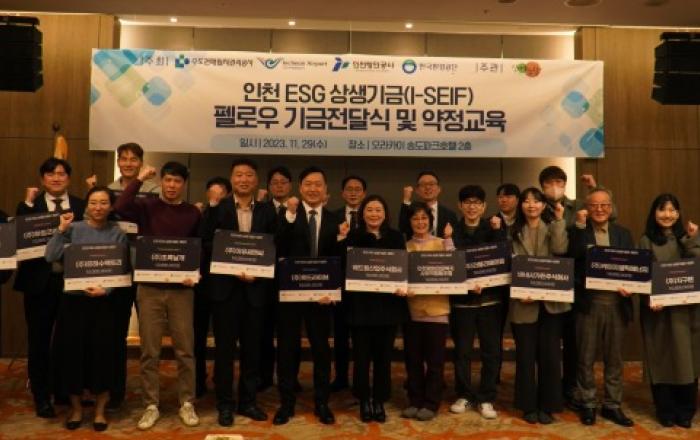 [사진=수도권매립지]수도권매립지관리공사 송병억 사장은 지난 29일 인천 오라카이 송도파크호텔에서 ‘2023 인천 ESG 상생기금(I-SEIF) 전달식’을 개최했다고 30일 밝혔다.인천 ESG 상생기금은 매립지공사, 인천국제공항공사, 인천항만공사, 한국환경공단이 2018