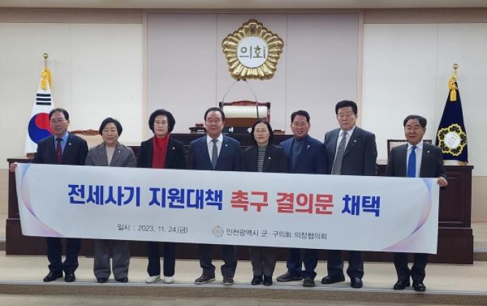 인천광역시 군·구의회 의장협의회(회장 배상록 미추홀구의회 의장)는 24일 부평구의회에서 11월 월례회의를 개최하고 인천시의 각종 현안에 대해 논의했다. 특히,이날 회의에서 전세사기 지원 대책 촉구 결의문 채택의 건을 의결했다.이번 결의안의 중점내용으로는 전세사기 지원을
