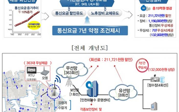 인천광역시 상수도사업본부는 노후된 상수도 정보기술(IT) 시설물을 교체하고 증가하는 상수도 기반 시설 통신요금을 절감하기 위해 ‘스마트 통신망’ 구축사업을 추진한다고 밝혔다.이번 통신망 구축은 언제 어디서나 신속한「스마트 물관리」를 구현하기 위한 기반통신망 사업으로,