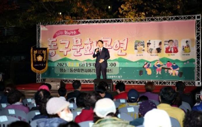 인천 동구청은 관내 학교·복지시설·공동주택 주민들의 문화예술 접근성을 높이기 위하여 추진한 ‘찾아가는 문화공연’이 성공적으로 마무리됐다고 밝혔다.구는 지난 7월 26일 인천산업정보학교를 시작으로 재능중학교, 영화초등학교 등 관내 학교와 창영사회복지관, 브리즈힐 아파트,