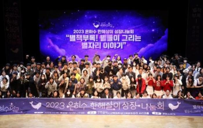 도성훈 인천시교육감은 지난 18일 인천학생교육문화회관 싸리재홀에서 열린 ‘2023 은하수학교 한해살이 성장나눔회’에 참석해 1호 동행자로서 학생들을 격려했다.은하수학교는 청소년자치학교로 청소년, 길잡이교사, 마을주민이 수평적 관계 속에서 교육과정부터 프로젝트 학습까지