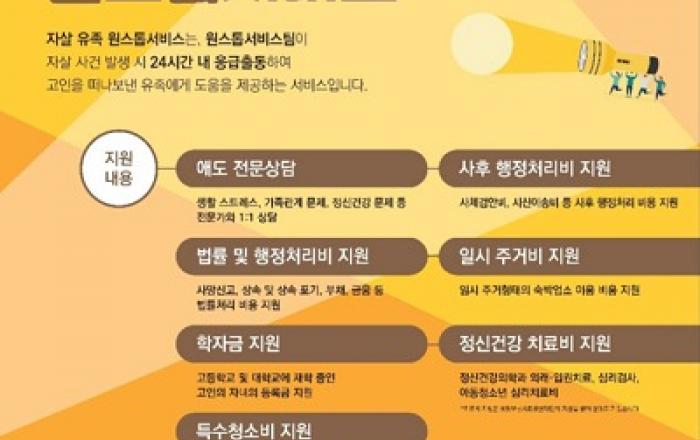 2023년 ‘세계 자살 유족의 날’을 맞아 자살 유족이 지역사회에서 일상을 회복해 건강하게 살아갈 수 있도록 자살 유족 원스톱 서비스로 치유와 회복을 지원하겠다고 밝혔다. ‘세계 자살 유족의 날’은 자살로 인해 상처받은 유족들이 치유와 위로에 관한 이야기를 나누며