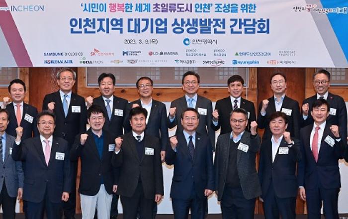 [사진제공=인천시]지난 3월 유정복 인천시장과 인천지역 대기업 대표들 간의 만남 이후, 인천시와 대기업 대관업무 담당자가 직접 참석한 첫 번째 간담회다.인천지역 주요 대기업 대외협력 실무담당자들이 참석한 가운데 시책사업을 공유하고 기업애로 사항을 청취하는 등 상생협력