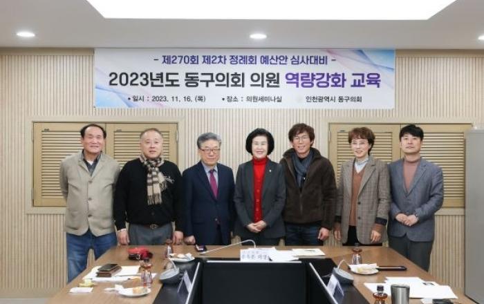 인천 동구의회는 지난 16일 의원과 의회사무과 직원을 대상으로 2024년 예산안 심사를 대비한 역량강화 교육을 실시했다. 이날 교육은 제270회 제2차 정례회 회기를 앞두고 2024년도 사업예산안 및 기금운용계획안 심사에서 필요한 전반적인 지식과 전문 능력을 배양하기