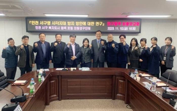 인천 서구의회 의원연구단체 '복지도시 서구 정책포럼 의원연구단체'가 13일 의원간담회장에서 서구형 복지 사각지대 방지 방안에 대한 연구 최종보고회를 개최했다.‘복지도시 서구 정책포럼 의원연구단체’는 복지 사각지대에 놓인 주민을 발굴하고 복지 혜택이 고루 돌아갈 수 있