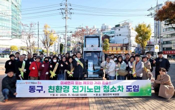 김찬진 구청장은 지난 10일 깨끗한 도시환경 조성을 위하여 동인천역 북광장에서 ‘11월 클린업 데이’ 행사를 진행했다고 밝혔다.동인천역 북광장에서 좁은 도로와 골목 청소를 위해 김 구청장은 도입한 친환경 소형 전기노면 청소차를 직접 운전하는 시연회를 열었다. 전기 청소