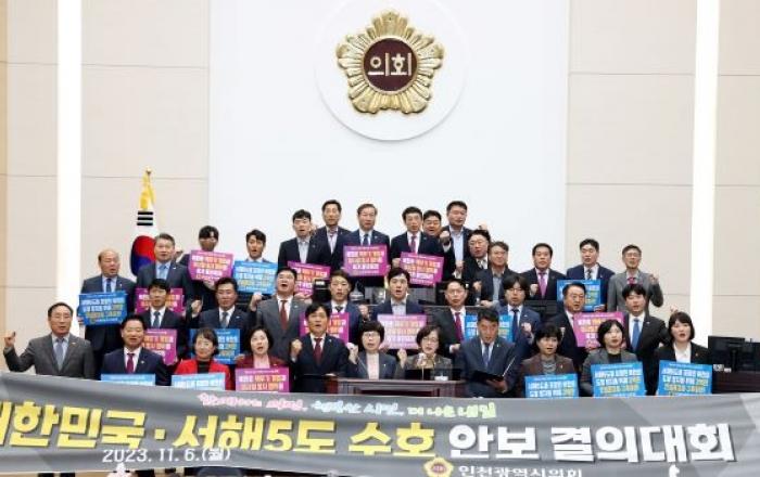 인천시의회는‘제291회 제2차 정례회’ 개회 날이 6일 의회 본회의장에서 본회의 종료 후 허식 의장 등 시의원 전원이 참석한 가운데 안보 결의대회를 열고, 결연한 안보 태세 강화에 앞장서기로 했다. 이날 결의대회에서는 신영희·박용철·장성숙·김명주 의원이 대표로 결의문을