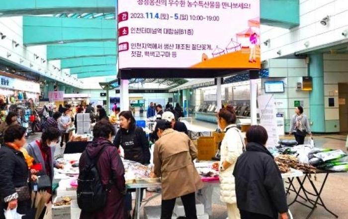 인천교통공사는 지난 4일부터 5일까지 인천터미널역에서 옹진군청과 함께 지역 농수산물 판매 활성화를 위한 ‘농수산물 직거래장터’를 개최했다고 밝혔다.이번 행사는 지역 농어촌의 판로 확대를 지원하여 지역사회에 기여코자 마련된 자리로 옹진군에서 생산된 다양한 특산품들을 소비