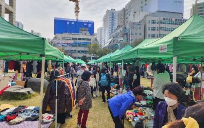 부평구는 지난 4일 부평 어울림마당(잔디광장)에서 열린 ‘제78회 부평나눔장터’를 성황리에 마쳤다.이날 개인(어린이팀 부평북초 조아진, 백윤아 등) 및 단체 105개 팀이 참여해 가정에서 사용하지 않는 의류, 신발, 주방용품, 잡화, 도서, 아동용품 등의 중고 물품이나