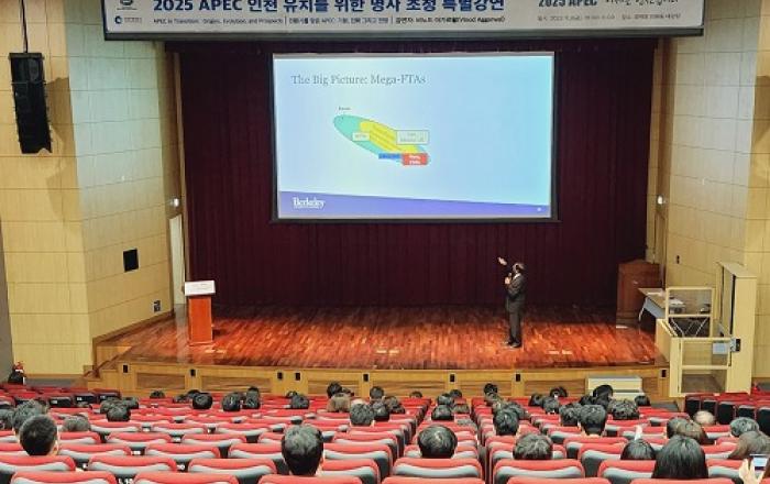 유정복 인천시장은 지난 11월 3일 인천경제자유구역청 대강당에서 2025 아시아‧태평양경제협력체(APEC) 정상회의 인천 유치를 위해‘APEC 명사초청 특별강연’을 개최했다고 밝혔다.이날 명사로 나선 비노드 아가르왈(Vinod Aggarwal) 미국 버클리대학교 교수는