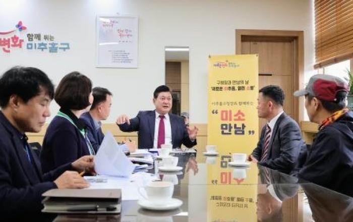 인천 미추홀구 이영훈 구청장은 31일 구청장과 주민이 만나는 날인 ‘미소 만남’을 개최했다.‘미소 만남’은 지난 1월 시작해 이번까지 8회 진행했으며, ‘미소’는 ‘새로운 미추홀, 열린 소통’의 약어이다.이날 이영훈 구청장은 맨발 걷기를 위한 황톳길 조성 요청, 주안1