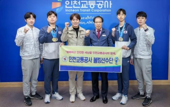 왼쪽부터 홍해솔, 김경민 선수,유용섭감독,김성완사장,오병준,이호현선수[사진제공=인천교통공사]인천교통공사 김성완 사장은 지난 30일 본사 4층 소회의실에서‘2023 세계볼링선수권대회’에서 종합우승을 달성한 볼링선수단을 격려하는 행사를 개최했다.공사 볼링선수단은 올 한해
