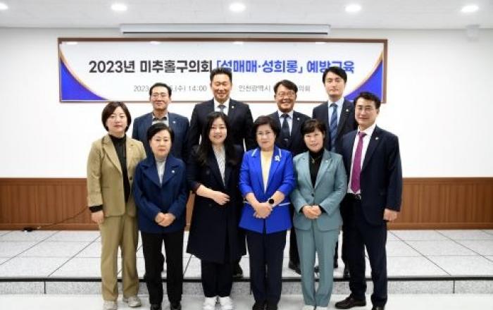 미추홀구의회는 지난 25일 의회 세미나실에서 구의원을 대상으로 ‘2023년 성희롱·성매매 예방교육’을 실시했다. 미추홀구의회 의원 일동은 성에 대한 건전한 가치관 함양과 올바른 성문화 정착을 위해 이번 교육에 적극 참여했다. 초빙된 박은영 강사는 한국양성평등
