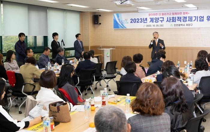 인천광역시 계양구 윤환 구청장은 지난 25일 관내 사회적경제기업 대표와 임·직원, 전문재능봉사단 프로보노 위원, 사회적경제육성위원회 위원 등 사회적경제기업 관계자 40여 명이 참여한 가운데 구청 2층 신비홀에서 ‘사회적경제기업 워크숍’ 행사를 개최했다고 밝혔다. 이번