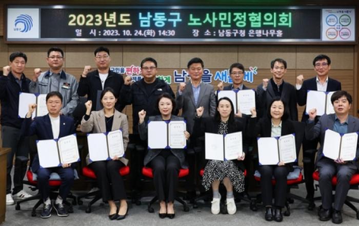 인천시 남동구는 최근 구청 은행나무홀에서 '2023년 남동구 노사민정협의회'를 열고 경제 활성화 방안을 모색했다고 26일 밝혔다. 남동구 노사민정협의회는 노동단체, 경영자단체, 민간단체, 지방정부 대표자 등 실무경험이 풍부한 노사민정 전문가 18명으로 구성됐으며,