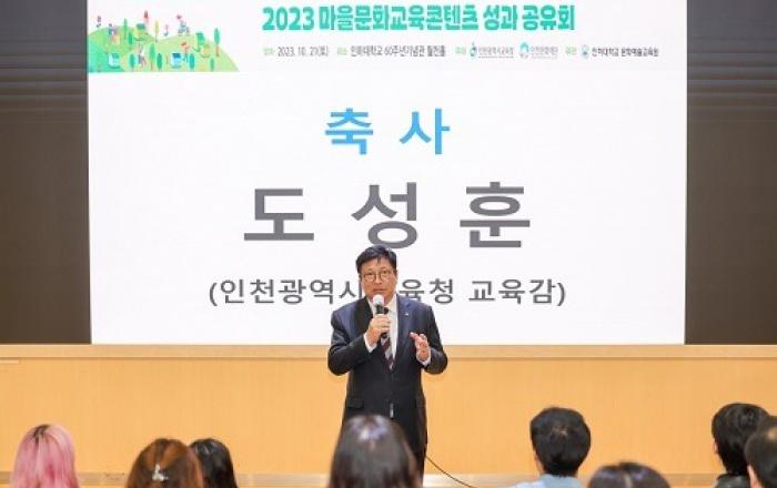도성훈 인천광역시교육감이 마을과 함께하는 문화교육 전문가 양성에 다양한 지원을 약속했다.도성훈 교육감은 지난 21일 인하대학교에서 열린 2023년 마을문화교육 활동가 양성과정 수료식에서 “아이들이 글로벌 인재로 성장하기 위해서는 자기 마을의 역사와 문화를 아는 것이 먼