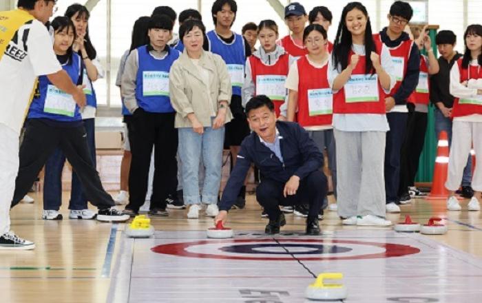 인천시 남동구는 최근 남동어울림체육관에서 ‘2023년 남동구 꿈드림 청소년 체육대회를 개최했다고 16일 밝혔다. 박종효 구청장도 꿈드림 청소년 26명과 함께 컬링 종목을 함께하며 교류하는 시간을 가졌다. 이번 행사는 코로나19 팬데믹 영향으로 그동안 사회적 교류가 부족