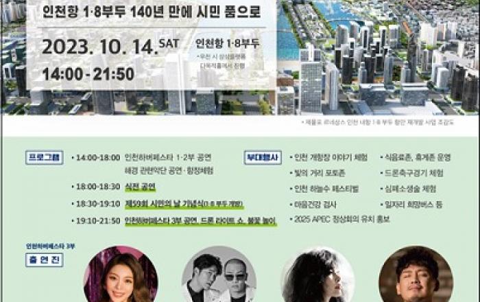 인천항이 140년 만에 인천시민의 품으로 돌아온 것과 인천시민의 날을 기념해 인천시가 축하 행사를 마련했다. 인천광역시 유정복 시장은 그간 항만시설로서 일반인의 출입이 엄격히 제한됐던 인천항 내항 1·8부두 개방을 기념하기 위해 오는 10월 14일(토요일) 인천항 1·