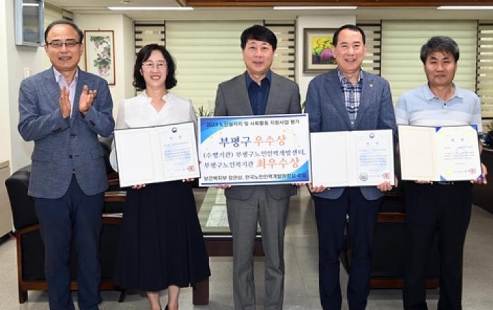 부평구는 보건복지부와 한국노인인력개발원에서 실시한 '2023년(2022년 실적) 노인일자리 및 사회활동지원사업 우수 수행기관·지자체 평가'에서 우수상을 수상하며 2년 연속 우수지자체로 선정됐다. 구는 지난해 부평구노인인력개발센터, 부평구노인복지관 등 5개 수행기관에