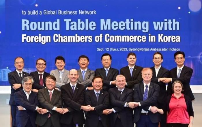 [사진제공=인천시]인천시와 주한외국상공회의소, 대한무역투자진흥공사(KOTRA), 대한상공회의소가 인천의 투자 유치와 글로벌 도시 도약을 위한 협력을 강화한다.인천광역시 유정복 시장은 12일 인천 송도에서 주한외국상공회의소, 대한무역투자진흥공사, 대한상공회의소의 회장단