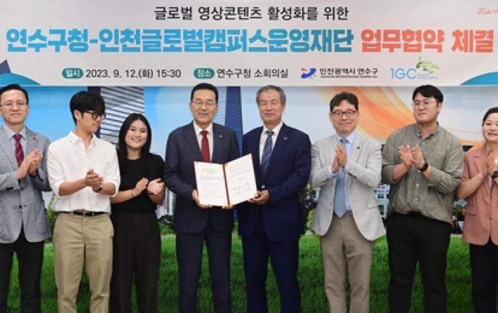 연수구가 인천글로벌캠퍼스운영재단과 미디어 분야 발전을 위한 상호 정책·정보 교류를 내용으로 글로벌 영상 콘텐츠 활성화를 위한 업무협약을 체결했다. 이에 따라 양 기관은 미디어 분야의 인적·물적 자원을 공동으로 활용하는 관·학 협력체계를 구축하고 상호 간 미디어 콘텐