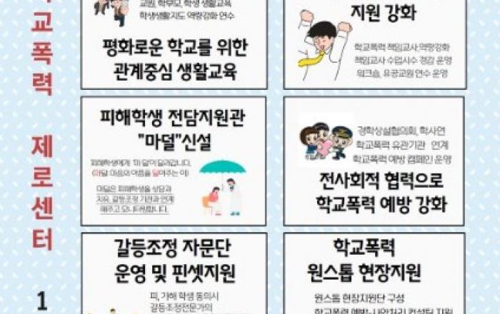 인천광역시교육청 도성훈 교육감은 9월부터 인천형 학교폭력 제로센터를 시범 운영한다고 8일 밝혔다. 학교폭력 제로센터는 단위 학교의 학교폭력 예방과 대응 역량 강화를 위해 ▶학교폭력예방교육 ▶사안 처리 ▶피해학생 전담관 ▶피·가해 학생 갈등 조정 ▶관계 기관 연계 등을
