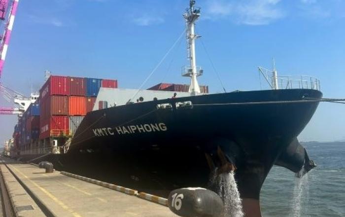케이엠티씨 하이퐁(KMTC HAIPHONG)호 전경 / 사진제공 = 인천항만공사인천항만공사는 국적선사 고려해운과 남성해운의 ‘코리아 하이퐁(Korea Hai Phong, KHP)’ 서비스가 인천항에서 신규 운영된다고 10일 밝혔다. KHP는 1,800TEU급 선박 2척