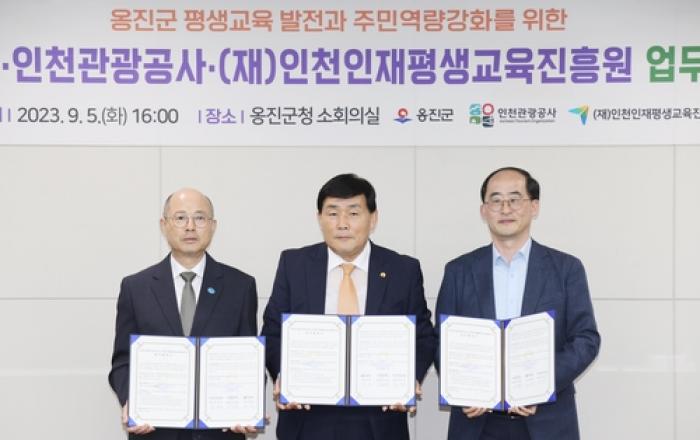 옹진군은 지난 5일, 군청 소회의실에서 (재)인천인재평생교육진흥원, 인천관광공사와 '옹진군 평생교육 발전과 섬 주민들의 역량강화'를 위한 업무협약을 체결했다고 밝혔다. 각 기관은 이번 협약을 통해 ▲평생교육 발전 및 평생학습도시 조성을 위한 인적·물적 인프라 공유