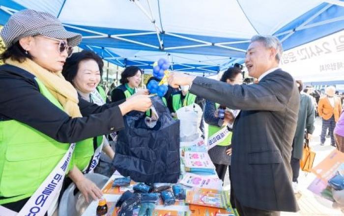 경기도와 경기도교육청, 경기도의회가 6일 자원순환의 날을 맞아 1회용품 없는 경기융합타운 조성을 위해 합동 캠페인을 전개했다. 캠페인은 경기융합타운 입주기관들의 청사 내 1회용품 사용 제한과 1회용컵 반입 금지 홍보를 위해
