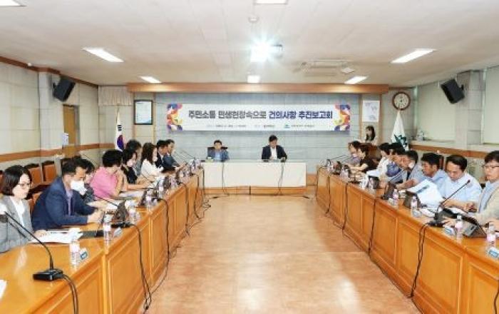 인천 미추홀구 이영훈 구청장은 30일 ‘주민 소통 민생현장 속으로 건의 사항 최종보고회’를 개최, 주민 건의 사항에 대한 부서별 추진 상황을 점검했다.동 방문을 통해서 제출된 주민 건의 사항은 146건으로 생활과 밀접한 도로, 교통 및 녹지 분야가 가장 높은 비중을 차