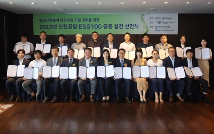 인천국제공항공사는 30일 송도 오크우드호텔에서 공사의'ESG 역량강화 지원사업'에 참여하고 있는 기업들과 함께 'ESG 경영 실천 공동 선언식'을 개최했다고 밝혔다. 이날 선언식에는 인천국제공항공사 이희정 부사장, 항공우주산학융합원 유창경 원장, 한국능률협회컨설팅