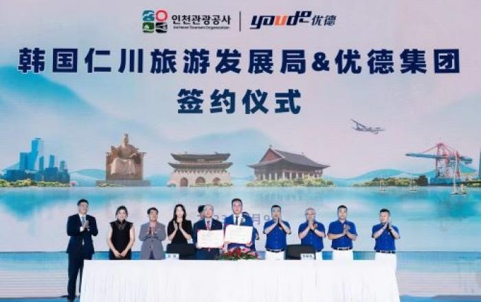 인천관광공사-중국 유더그룹 업무협약 체결[사진제공=인천관광공사]인천광역시와 인천관광공사는 중국 유더그룹 임직원 포상관광 인천 유치를 확정했다고 29일 밝혔다. 공사는 지난 4월부터 중국 현지 세일즈콜을 통해 유더그룹 임직원 포상관광 단체 인천 방문을 제안하였고, 유더그