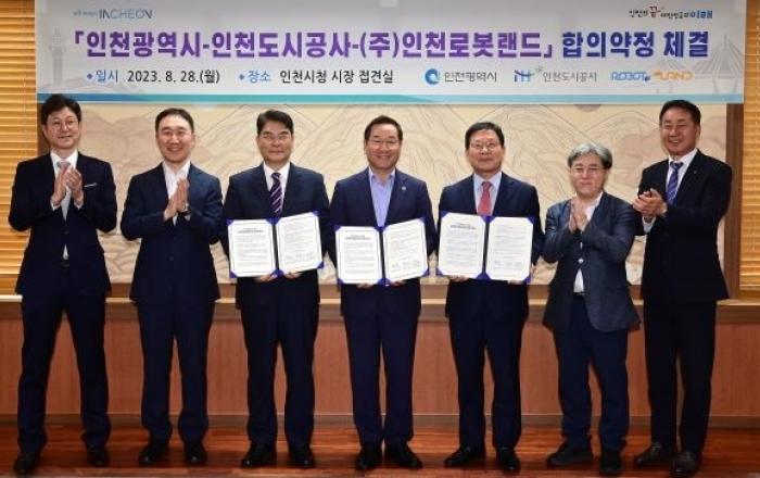 인천로봇랜드 조성사업 정상화 합의가 이뤄지면서 사업 추진에도 속도가 붙게 됐다.인천광역시는 8월 28일 시청 접견실에서 인천로봇랜드 조성사업의 조기 정상화를 위해 인천시, 인천도시공사, ㈜인천로봇랜드(특수목적법인)가 합의약정을 체결했다고 밝혔다. 이날 체결식에는 유정복