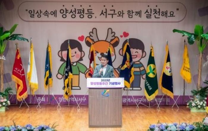 인천 서구는 지난 25일 서구여성단체협의회(회장 김재경)과 함께 서구문화회관에서 ‘2023년 양성평등주간 기념행사’를 개최했다고 밝혔다. 양성평등주간은 매년 9월 1일부터 7일까지이며 양성평등기본법 시행령에 규정된 주간이다. 서구는 양성평등주간을 맞아 양성평등 유공