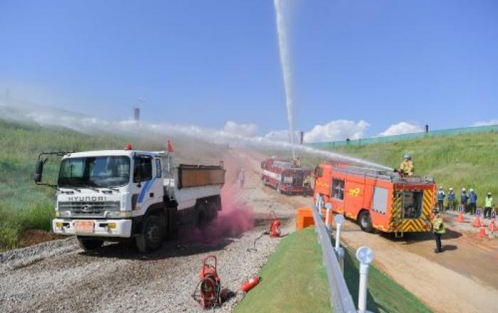 긴급제동시설 시연 훈련[사진제공=수도권매립지관리공사]수도권매립지관리공사(사장 송병억)는 지난 25일 제3-1매립장에서 인천검단소방서와 함께 매립장 안전 강화를 위한 긴급제동시설 시연 훈련을 실시했다고 28일 밝혔다.긴급제동시설은 제3-1매립장 퇴출로에 설치된 시설로,