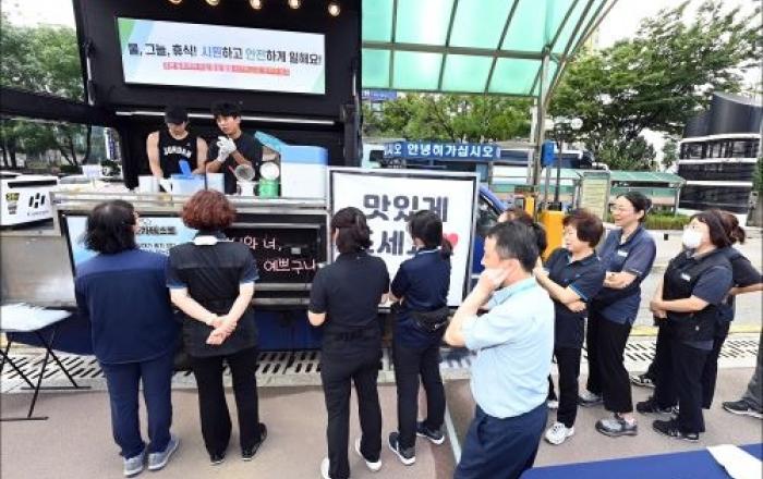 부평구는 지난 25일 야외근로자를 대상으로 컵빙수, 수박화채 등을 제공하는 ‘폭염 안전 푸드트럭’을 운영했다.이번 사업은 야외 및 실내 작업 근로자가 지속적인 폭염 속에서 건강하고 안전하게 작업할 수 있도록 지원하기 위해 마련됐다.푸드트럭에는 ‘온열질환 자가진단표’를